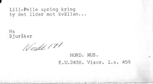 //// Lill-Pelle spring kring //// ty det lider mot kvällen... //// Hs //// Bjuråker //// NORD. MUS. , //// E.U.2438. Visor. I.s. 459 ////