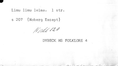 //// Limu limu leima. 1 str. //// s 207 (Moberg Except) //// DYBECK MS FOLKLORE 4 ////