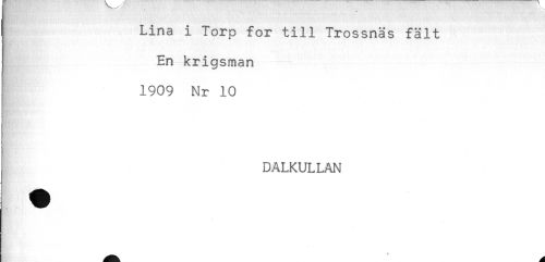 //// Lina i Torp for till Trossnäs fält //// En krigsman //// 1909 Nr 10 //// DALKULLAN //// — * ////