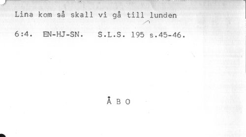 //// Lina kom så skall vi gå till lunden //// 6:4. EN-HJ-SN. S.L.S. 195 s.45-46. ; //// 4, * * .i //// ÅBO ////