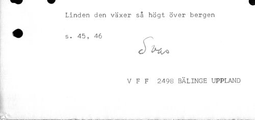 //// Linden den växer så högt över bergen //// ^ s. 45, 46 //// V F F 2498 BÄLINGE UPPLAND //// _ ////