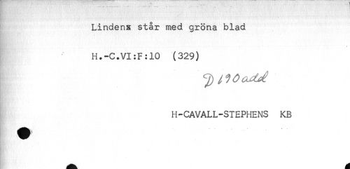 //// Lindens står med gröna blad //// H.-C.VI:F:10 (329) //// - //// HB''' * //// H-CAVALL-STEPHENS KB //// ^' ////
