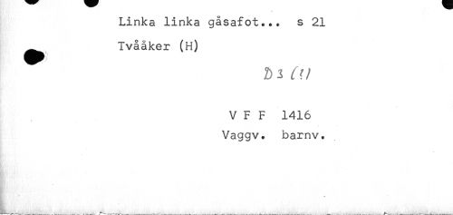 //// Linka linka gåsafot... s 21 //// ^ Tvååker (H) //// V F F 1416 //// Vaggv. barnv. ////