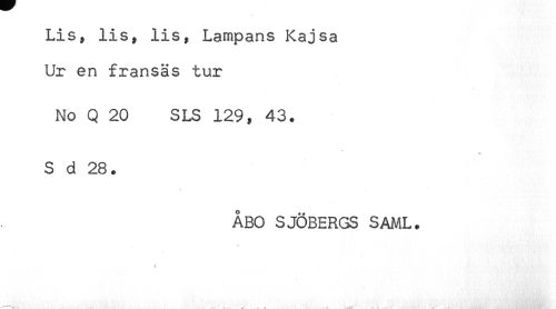 //// Lis, lis, lis, Lampans Kajsa //// Ur en fransäs tur //// No Q 20 SLS 129, 43. //// * //// S d 28. //// ÅBO SJÖBERGS SAML. ////
