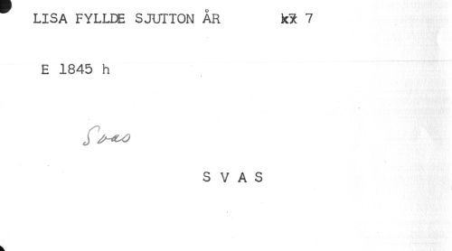 //// LISA FYLLDE SJUTTON AR kX 7 //// E 1845 h //// J //// S V A S ////