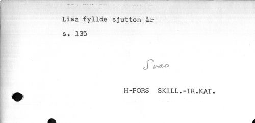 //// - . ' ...... . . '..... .. . .. _ //// Lisa fyllde sjutton år //// s. 135 //// t //// ^ H-FORS SKILL.-IR.KAT. //// # ' - * ////