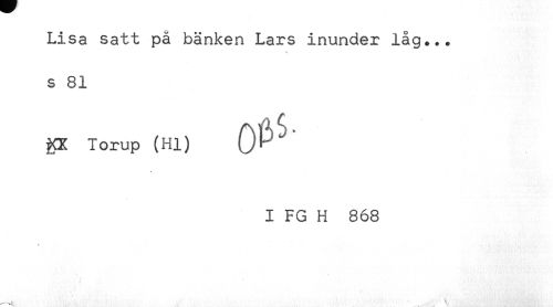 //// Lisa satt på bänken Lars inunder låg... //// + //// s 81 //// %X Torup (Hl) //// I FG H 868 ////