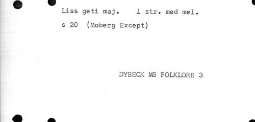 //// Liss geti maj. 1 str. med mel. //// s 20 (Moberg Except) //// DYBECK MS FOLKLORE 3 ////