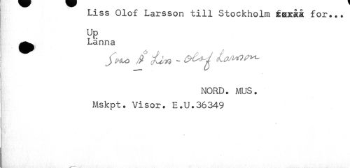 //// I Liss Olof Larsson till Stockholm ÉHxåå for... //// Up //// ^^ Länna //// H § //// NORD. MUS. //// Mskpt. Visor. E.U.36349 //// t*..' '' //// L ////