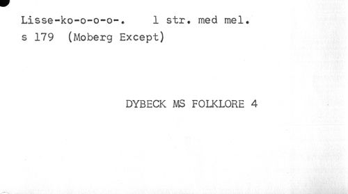 //// Lisse-ko-o-o-o-. 1 str. med mel. //// s 179 (Moberg Except) //// DYBECK MS FOLKLORE 4 ////