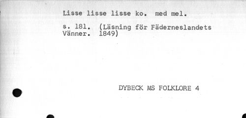 //// ! Lisse lisse lisse ko. med mel. //// s. 181. (Läsning för Fäderneslandets //// Vänner. 1849) //// * //// ^ DYBECK MS FOLKLORE 4 ////