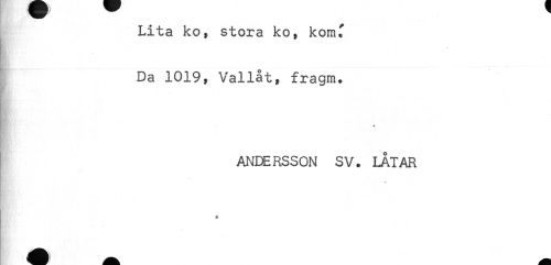 //// Lita ko, stora ko, kom^ //// Da 1019, Vallat, fragm. //// * //// * //// ANDERSSON SV. LÅTAR ////
