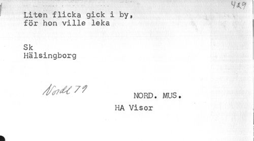 //// Liten flicka gick i by, //// för hon ville leka //// Sk //// Hälsingborg //// ^ ! //// . //// ^^^^ NORD. MUS. //// HA Visor //// < //// i ////