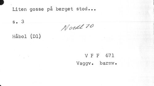 //// Liten gosse på berget stod... //// s. 3 //// { //// Håbol (Dl) //// V F F 671 //// Vaggv. barnv. ////