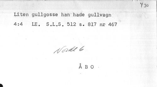 //// f JO //// Liten gullgosse han hade gullvagn //// t //// 4:4 LE. S.L.S. 512 s. 817 nr 467 //// ÅBO ////