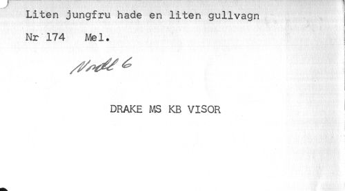 //// Liten jungfru hade en liten gullvagn //// Nr 174 Mel. //// j //// ! //// i //// i //// t //// DRAKE MS KB VISOR //// * ////
