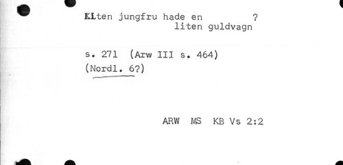 //// ^ KLten jungfru hade en ? //// liten guldvagn //// s. 271 (Arw III s. 464) //// (Nordl. 6?) //// ARW MS KB Vs 2:2 ////