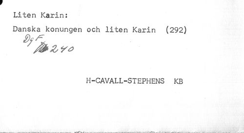 //// Liten Karin: //// Danska konungen och liten Karin (292) //// H-CAVALL-STEPHENS KB ////