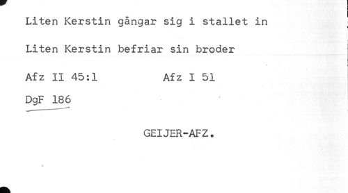 //// Liten Kerstin gångar sig i stallet in ; //// i //// Liten Kerstin befriar sin broder //// Afz II 45:1 Afz I 51 //// DgF 186 //// GEIJER-AFZ. //// t ////