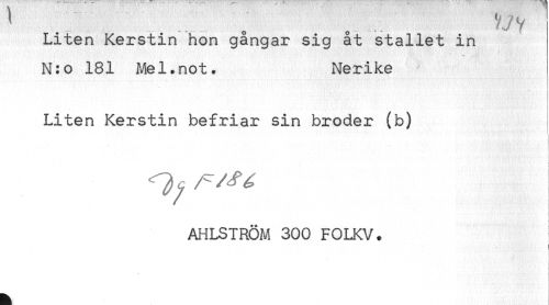 //// i . - . ... yyy //// Liten Kerstin hon gångar sig åt stallet in //// N:o 181 Mel.not. Nerike //// Liten Kerstin befriar sin broder (b) //// ^ i //// AHLSIRÖM 300 FOLKV. ////
