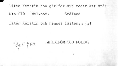 //// Liten Kerstin hon går för sin moder att stå: //// N:o 270 Mel.not. Småland //// Liten Kerstin och hennes fästeman (a) //// ^ AHLSTRÖM 300 FOLKV, //// * //// M—"***- ____ - * - . . —^t s*. , ////