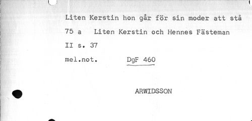 //// Liten Kerstin hon går för sin moder att stå //// 75 a Liten Kerstin och Hennes Fästeman //// II s. 37 //// mel.not. DgF 460 //// < //// '. //// ^ ARWIDSSON ////