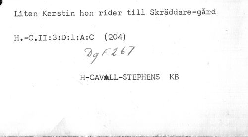 //// Liten Kerstin hon rider till Skräddare-gård //// H.-C.II:3:D:1:A:C (204) //// H-CAVALL-STEPHENS KB //// * //// ^ 'i'. , s ' . '- *- . . *4 . '! ' L*, .' '. ////
