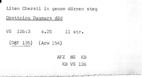 //// Liten Chersti in genom dörren steg //// Drottning Dagmars död //// VS 126:3 s.25 11 str. //// (D§F 135) (Arw 154) //// AFZ MS KB //// KB VS 126 //// t ////
