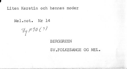 //// Liten Kerstin och hennes moder //// Mel.not. Nr 14 //// BERGGREEN //// SV.FOLKESANGE OG MEL. ////