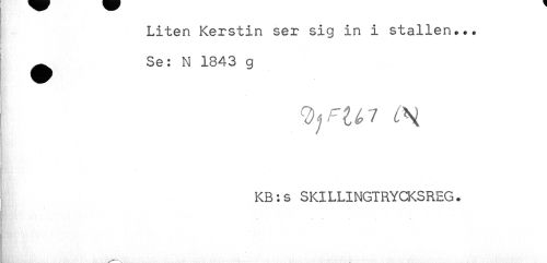 //// Liten Kerstin ser sig in i stallen... //// ^ Se: N 1843 g //// 7 //// KB:s SKILLINGTRYCKSREG. ////