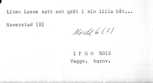 //// Liten Lasse satt och grät i sin lilla båt... //// Naverstad (B) //// I F G H 5013 //// Vaggv. barnv. ////