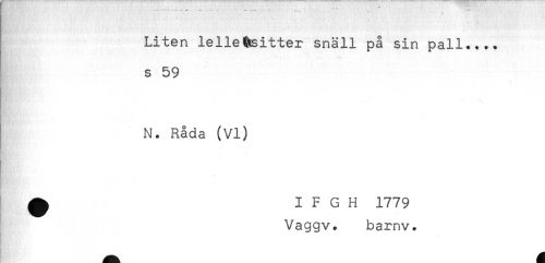 //// Liten lelle^sitter snäll på sin pall**.. //// s 59 //// N. Råda (VI) //// ^ I F G H 1779 //// Vaggv. barnv. ////
