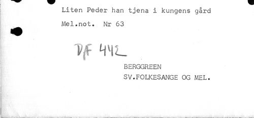 //// ! Liten Peder han tjena i kungens gård //// ^ Mel.not. Nr 63 //// Tå å " n u ^ //// BERGGREEN //// t, //// SV.FOLKESANGE OG MEL. ////