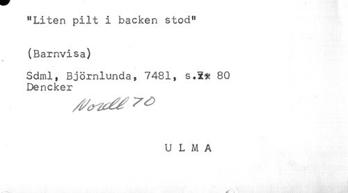 //// "Liten pilt i backen stod" //// (Barnvisa) //// Sdmls Björnlunda, 7481, 80 //// Dencker //// U L M A ////