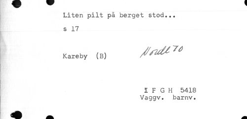 //// Liten pilt på berget stod... //// s 17 //// Kareby (B) //// I F G H 5418 //// Vaggv. bamv. ////