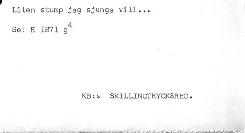 //// Liten stump jag sjunga vill... //// Se: E 1871 g^ //// . //// KB:s SKILLINGTRYCKSREG. //// ... ____ . ___ .. ___... -.... .... —------.----—-____——^^------^----J----^ ////