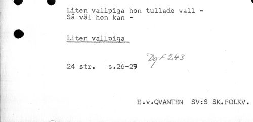 //// Liten vallpiga hon tullade vall - //// Så väl hon kan - //// ^^ Liten vallpiga //// 24 str. s.26-29 //// - //// . //// - //// E.v.QVANTEN SV:S SK.FOLKV. //// * ////