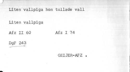 //// Liten vallpiga hon tullade vall //// Liten vallpiga //// - //// Afz II 60 Afz I 74 //// DgF 243 //// GEIJER-AFZ . //// < //// j ////