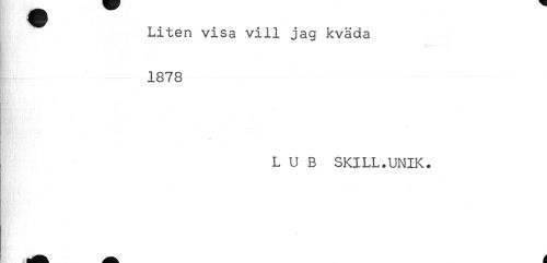 //// Liten visa vill jag kväda //// 1878 //// L U B SKILL.UNIK. //// - ////