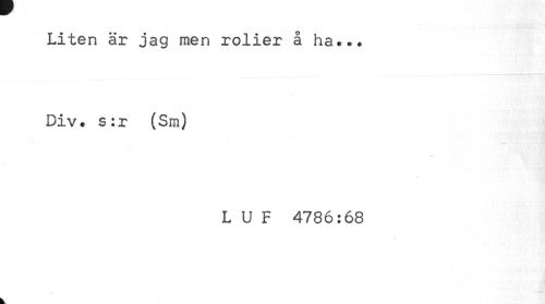 //// Liten är jag men rolier å ha... //// Div. s:r (Sm) //// * //// L U F 4786:68 ////