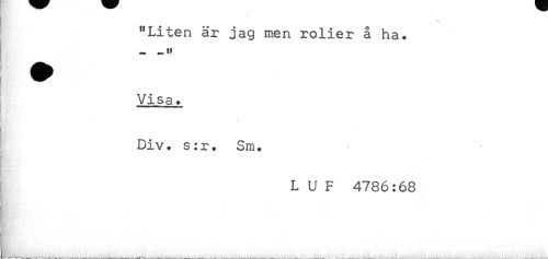 //// t. //// "Liten är jag men rolier å ha. //// - _!! //// Visa. //// Div. s:r. Sm. //// f. //// L U F 4786:68 ////