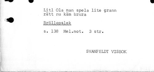 //// ! Litl Ola man spela lite grann //// I rätt nu käm brura //// ^^ Bröllopslek //// s. 138 Mel. no t. 3 str. //// SVANFELDI VISBOK ////