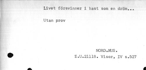 //// Livet försvinner i hast som en dröm... //// Utan prov //// a //// * * //// NORD.MUS. //// ^ E.U.21118. Visor, IV s.527 ////
