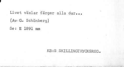 //// Livet växlar färger alla dar... //// (Av G. Schönberg) //// Se: E 1891 mm //// KB:S SKILLINGIRYCKSREG. ////