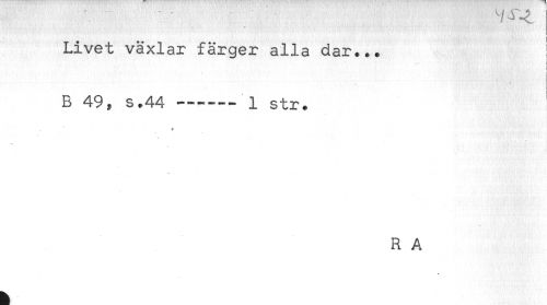 //// - t* //// Livet växlar färger alla dar... ! //// i //// ! //// < //// B 49, s.44------1 str. //// # //// R A ////