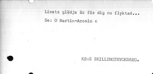 //// Livets glädje är för dig nu flyktad... //// Se: O Martin-Arosin c //// * * //// r //// KB:S SKILLINGTRYCKSREG. //// . * - ^ - - . ////