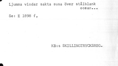 //// Ljumma vindar saKta susa over sLaiDianx //// ocean... //// Se: E 1898 f, //// KB: s SKILLINGTRYCKSREG. ////