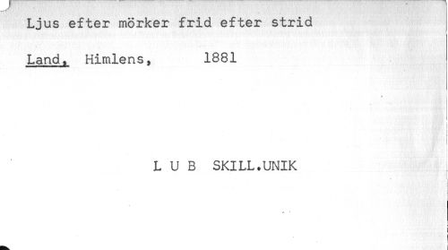 //// Ljus efter mörker frid efter strid //// Land, Himlens, 1881 //// * //// i //// L U B SKILL.UNIK //// < //// ! //// - ! ////