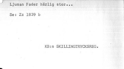 //// Ljusan raaer nariig stor... //// Se: Zz 1839 b //// ' ' ' 1; '.f - .< '' ' . . ] //// KB:s SKILLINGTRYCKSREG. ////