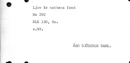 //// Ljuv är nattens fred //// No 292 //// SLS 130, 9o. //// s.59. //// ÅBO SJÖBERGS SAML. ////